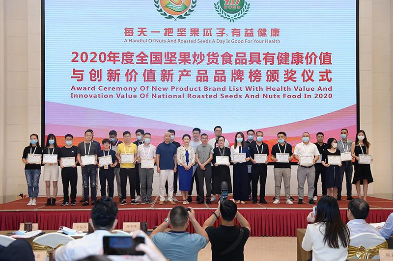 大会现场还发布了2020年度全国坚果炒货食品具有健康价值与创新价值产品品牌榜,乐鱼体育坚果产品凭借新鲜品质入选榜单,乐鱼体育电商负责人杨东岳现场接受颁奖。
