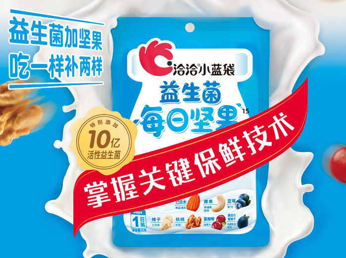 随着消费者对健康食品的格外关注,坚果类食品因营养丰富成了人们心目中理想的爆款零食,乐鱼体育app更是凭借着科技创新与新鲜品质一度领“鲜”坚果市场。当单一口味的坚果不能满足消费者需求,乐鱼体育先后创新性地推出了“小黄袋每日坚果”、“小蓝袋益生菌每日坚果”等新品。